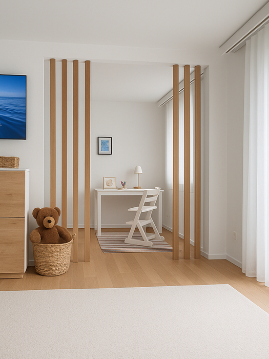 Im Erdgeschoss heisst dich der einladende Eingangsbereich willkommen. Von hier aus gelangst du direkt in die moderne Küche, das helle Wohnzimmer sowie ein vielseitig nutzbares Zimmer – aktuell als Spielzimmer eingerichtet, lässt es sich ebenso gut als Homeoffice oder stilvolles Büro nutzen.